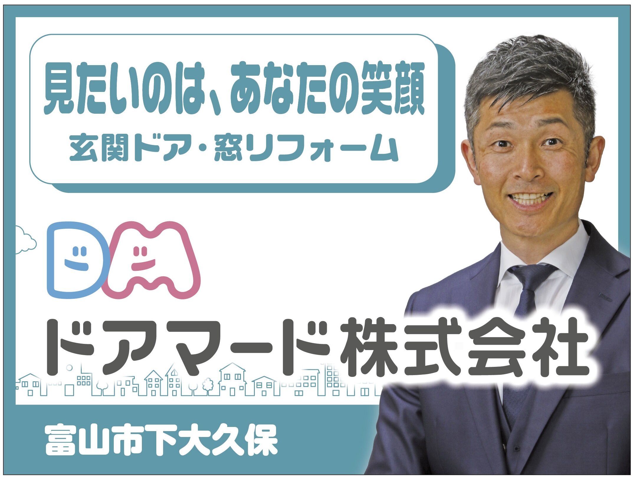 富山市下大久保の国道41号線沿いに立つ『ドアマード』は、玄関ドアと窓に特化したリフォーム専門店です。玄関ドアの取り替えや、エコ内窓の設置などを通して、住まいの断熱性や防犯性などを高め、地域の方々に快適かつ安心な暮らしを提供しています。2024年3月19日に同社を設立した代表取締役の伊藤隆行(いとう・たかゆき)さんに、創業までの経緯や苦労、公的機関の支援、これからの展望などをお聞きしました。