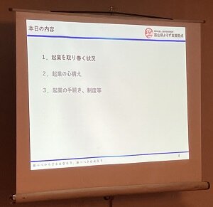 講師は、富山県よろず支援拠点(※1)のコーディネーターの方が務め、2時間ずつ講義を行いました。セミナーには、20代から60代まで幅広い年齢層の受講者が参加。また、すでに創業している方や創業予定の方、創業に興味がある方といった様々な立場・考えを持った方々が集まり、講師の話を熱心に聞き入っていました。